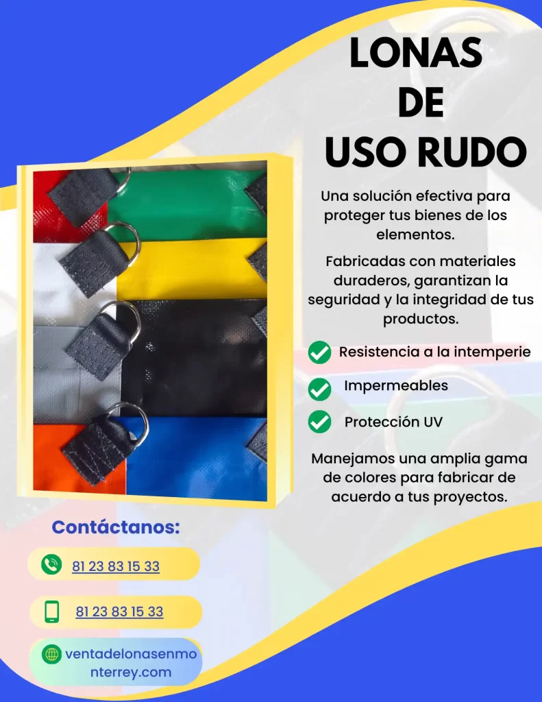 Lona de Uso Rudo de PVC Calibre 18 oz, Termosellado,costuras industriales y herrajes inoxidables para uso rudo.